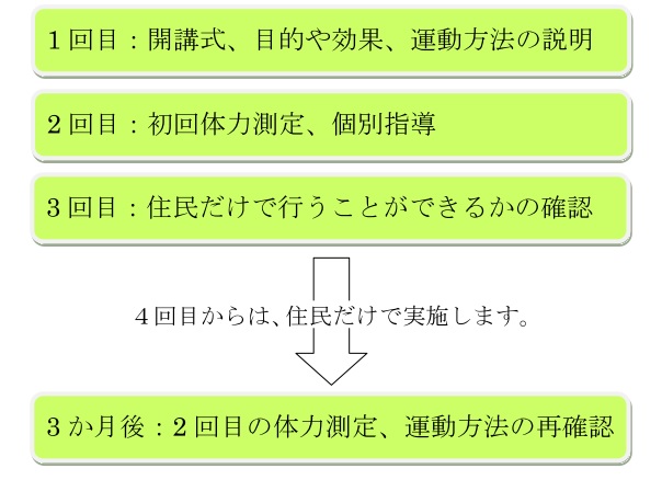 最初の3か月で4回程度(1回目、2回目、3回目、3か月後)は、サポートがあるほうが、より継続率が高くなると考えています。その後、6か月後、1年後とサポートがある市町村が多いです。