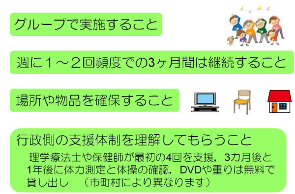 「いきいき百歳体操(徳島版)」をはじめる前にみなさんで一緒に知っておくとよいこと。