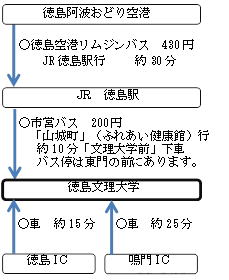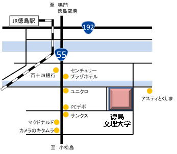 【お車でお越しの方へ】![]() 徳島文理大学駐車場をご利用下さい。ただし、第2駐車場をご利用の場合は、番号の書いていない駐車スペースにお停め下さい。番号の書いてある駐車スペースは、契約駐車スペースとなっております。 駐車場には限りがあり、混雑も予想されますので、できるだけ乗り合わせでご来場いただくか、公共交通機関をご利用ください。 |